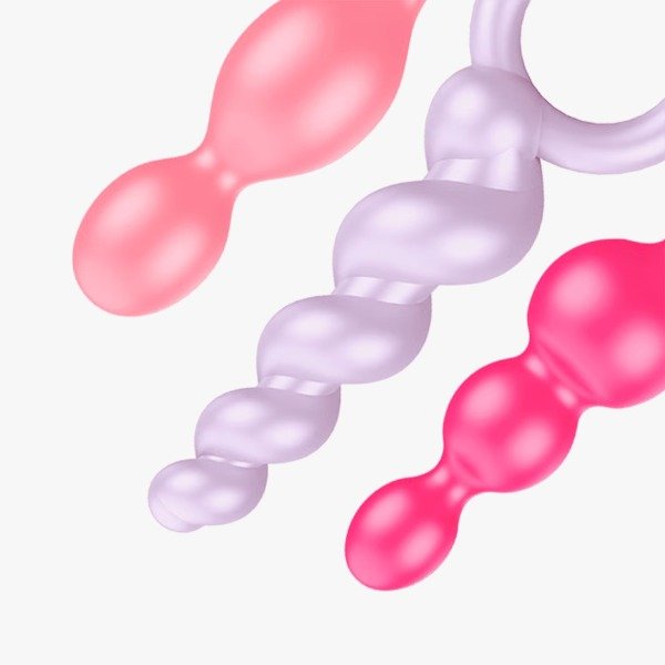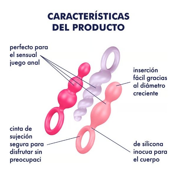 Con 3 formas diferentes, el juego Booty Call de Satisfyer es ideal como entrenamiento para los que se inician en el sexo anal. Los tapones anales presentan un diámetro ascendente increíble, por lo que el ano se estira con suavidad para que puedas acceder cuidadosamente. Es difícil superar la versatilidad de los tapones: Puedes elegir entre el diseño de espiral enrollada, una forma de cono estrecho y la clásica estructura esférica con 3 elementos. Todos los 3 diseños cuentan con una superficie suave y flexible hecha de silicona blanda higiénica e inocua para el cuerpo. La práctica cinta de sujeción facilita la introducción del juguete de bienestar sexual anal y hace que sea más fácil de utilizar. Además, tiene una base amplia que impide que los tapones anales se puedan introducir por completo, de modo que puedas dedicarte al entrenamiento anal sin tener que preocuparte.