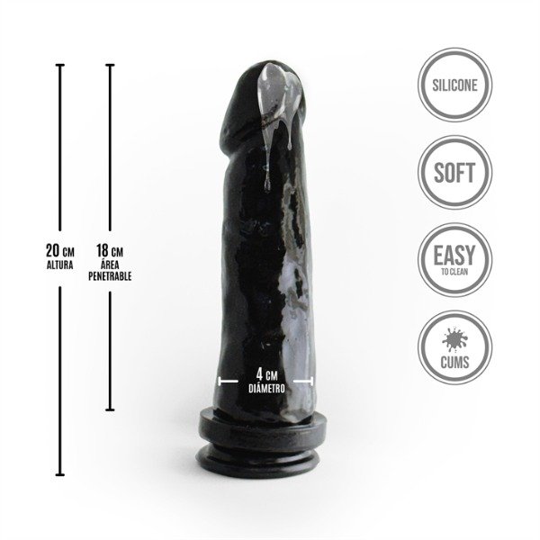 Cuenta con 19 cm de largo total, 16 cm de área penetrable y 3,5 cm de diámetro, ofreciendo una presencia firme y estimulante. Además, es fácil de limpiar y posee base con sopapa para mayor estabilidad y comodidad de uso.