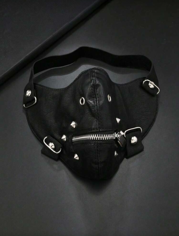 Su diseño cubre gran parte del rostro y se ajusta mediante bandas elásticas laterales, permitiendo una sujeción cómoda y firme. Los detalles metálicos y el acabado oscuro le dan un estilo punk, fetish y urbano, perfecto para quienes buscan un accesorio diferente, provocador y visualmente fuerte. ✨