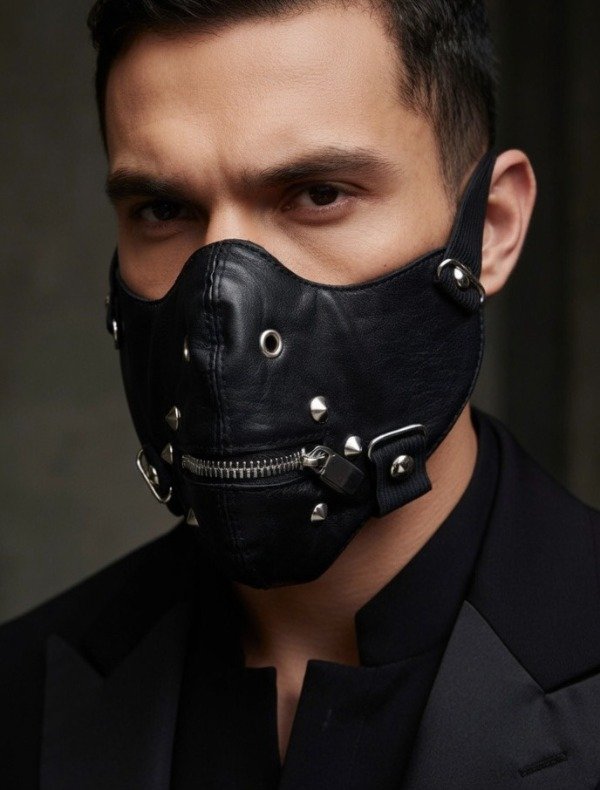 Máscara de estilo dark con diseño impactante, ideal para completar looks audaces, sesiones temáticas o sumar un accesorio protagonista a tu colección. Su estética combina textura símil cuero en color negro con cierre metálico frontal, remaches decorativos y herrajes laterales que le aportan una presencia intensa y súper llamativa.