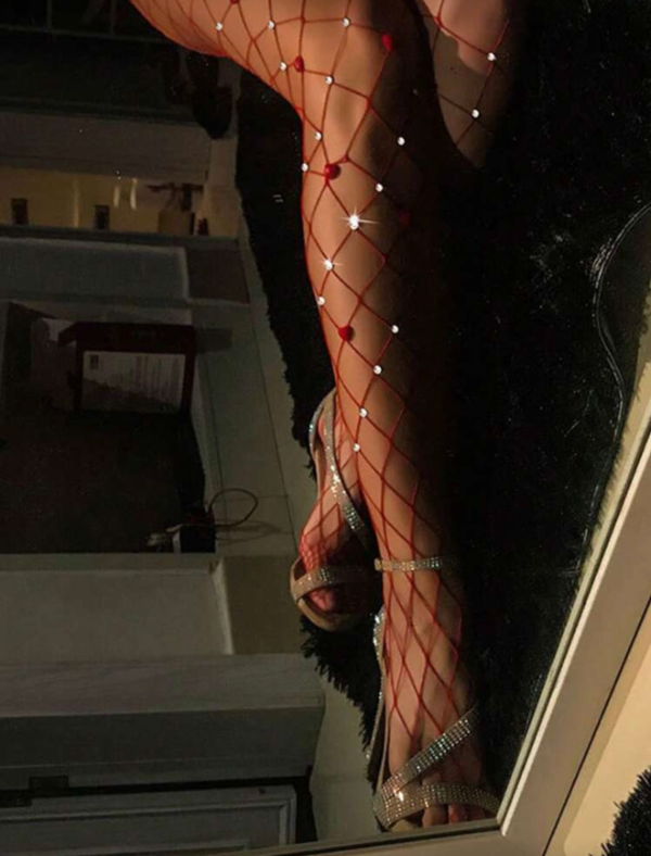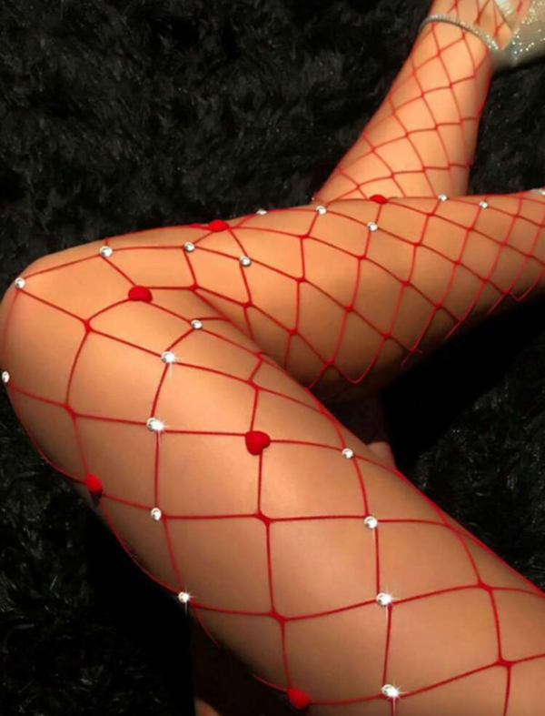 Medias red en color rojo intenso con destellos que iluminan cada movimiento.