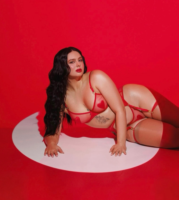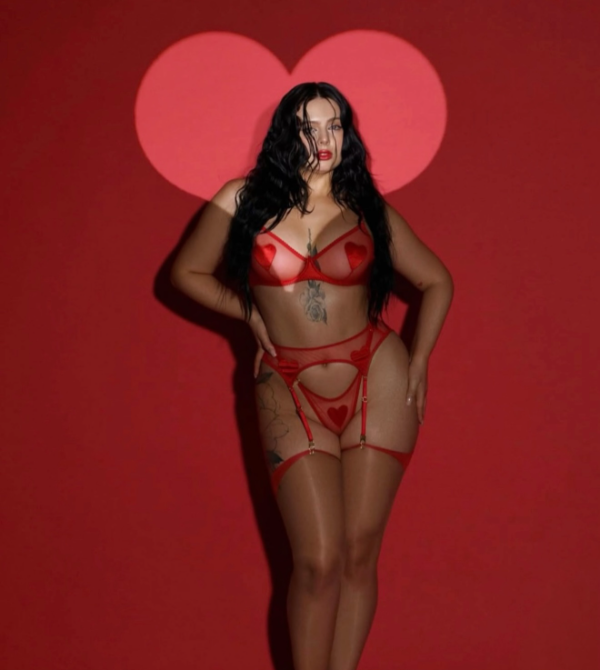 El conjunto se completa con medias bucaneras rojas, que aportan un toque final ultra sensual y elegante, realzando la silueta y creando una estética poderosa, femenina y segura.