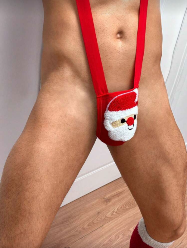 Este body está diseñado con tiras elásticas rojas ultra cómodas y una copa frontal con aplique de Santa Claus en felpa suave, perfecta para jugar y sorprender.