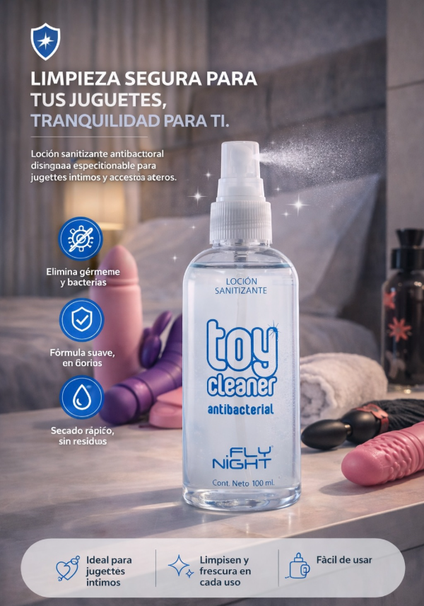 ¡Asegura momentos de intimidad seguros y limpios con nuestra Loción Sanitizante para Juguetes Sexuales TOY CLEANER de 100 CC con dosificador! Este producto es esencial para quienes buscan mantener sus juguetes en óptimas condiciones, garantizando una experiencia placentera y libre de gérmenes.
