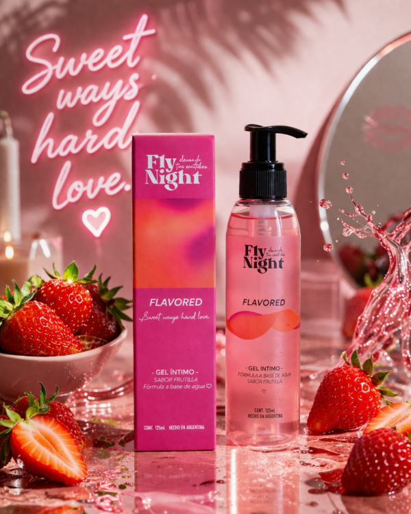 Gel lubricante con aroma y sabor a frutilla. Formula con ingredientes de alta calidad, sin azucares ni parabenos. No se pegotea.