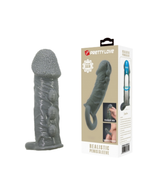 Esta funda elástica para pene añade grosor extra a cualquier pene. Impresiona a tu pareja y disfruta de horas de placer con mayor resistencia. Con la correa alrededor de los testículos, prolongarás la eyaculación hasta el clímax más explosivo que jamás hayas imaginado. Esta funda te brindará un placer increíble con sus suaves y estimulantes texturas punteadas.