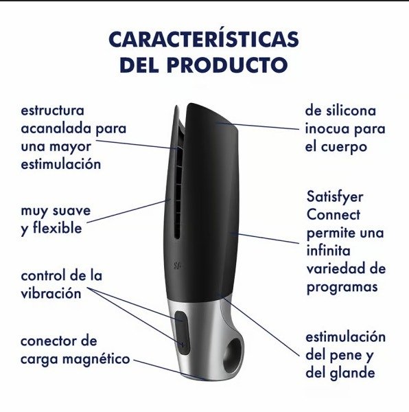 El Satisfyer Power Masturbator te deleita con su combinación de vibraciones intensas, la forma de silicona flexible y su compatibilidad con la aplicación gratuita Satisfyer Connect. El masturbador estimula la parte superior del pene y deleita con alas flexibles que masajean con la estructura estriada de su interior. El eje del masturbador está hecho de silicona respetuosa con el cuerpo que es muy agradable para la piel, higiénica y además se ajusta con firmeza perfectamente a la forma de tu miembro. El Satisfyer Power Masturbator está equipado con 14 programas de vibración preestablecidos que se pueden controlar a través del panel de control en el práctico mango.